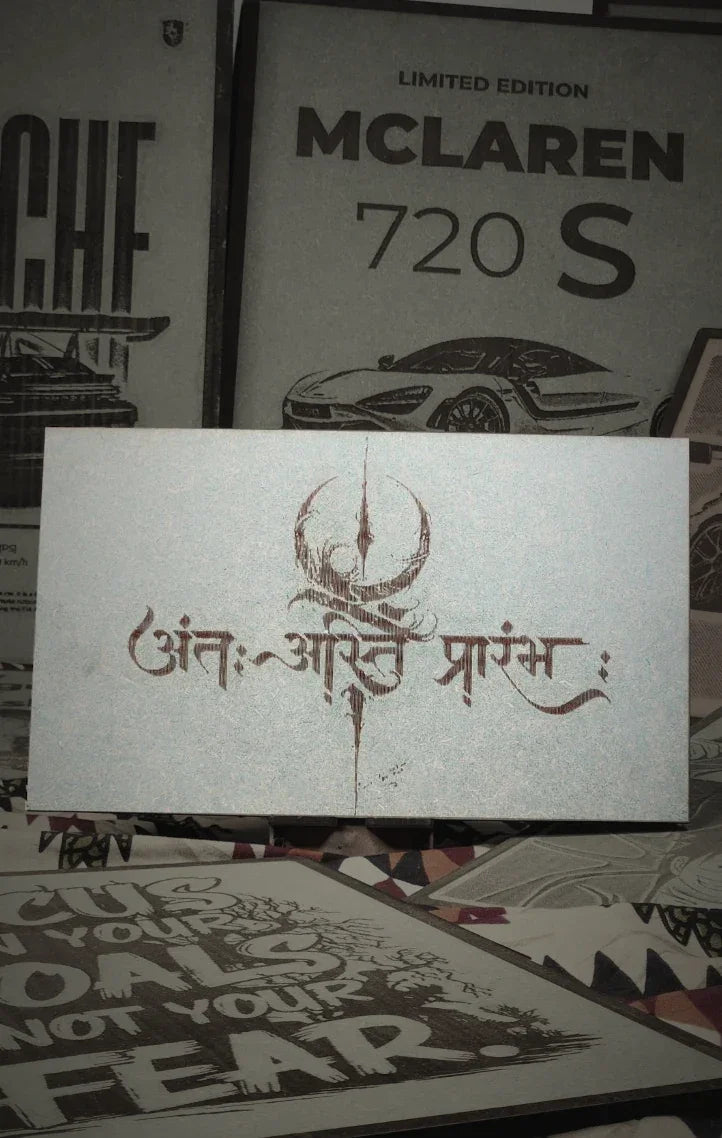 🔥 ANTARAH ASTI PRĀRAMBHA – WOODEN ENGRAVED FRAME 🕉️