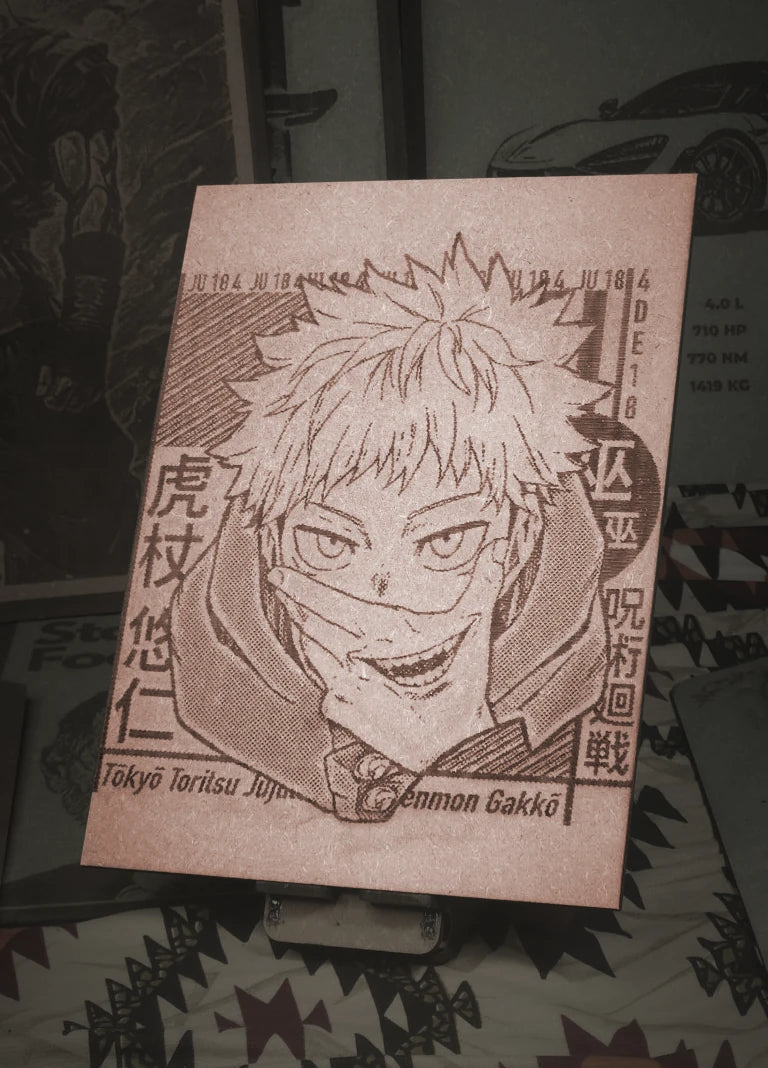 💥 YUJI ITADORI – STRENGTH THROUGH SACRIFICE WOODEN ENGRAVED FRAME ⚡